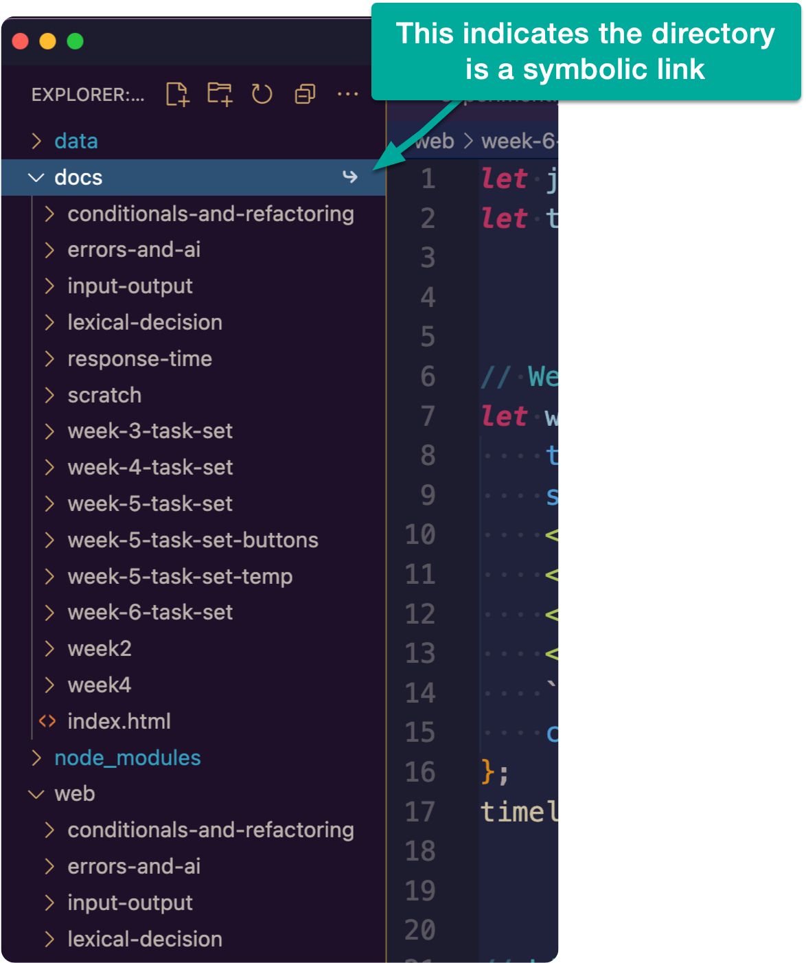 To confirm it worked, check the VSCode file explorer — you should see an arrow next to the docs directory. When you expand it, the contents should match those of the web directory.